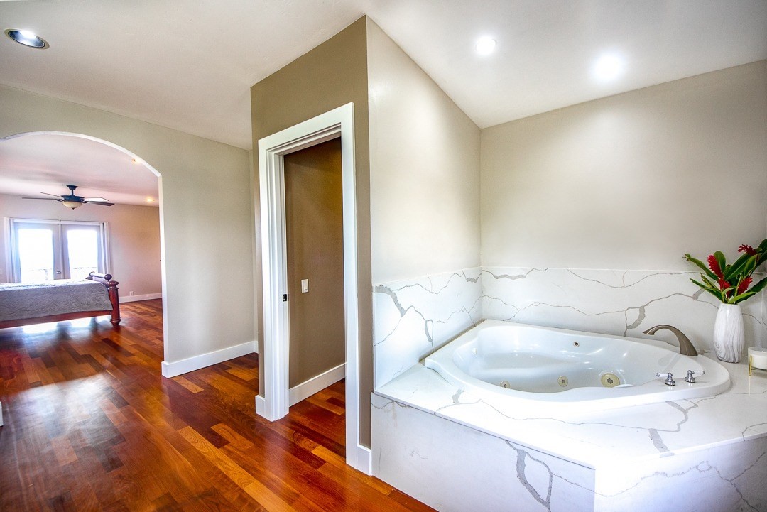 ~Resting above the open acres of coffee fields below that flow to the ocean. Spectacular panoramic views are seen from all south facing rooms. Perfect temperatures, typical trade wind breezes, and the occasional passing shower keep the home feeling fresh at all times.